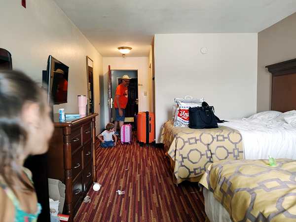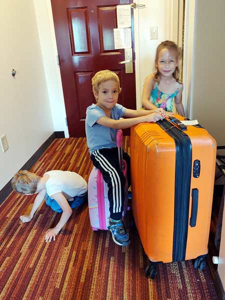 It was time to pack which I did then Randy took everything to the car. While we were waiting, Emmy was practicing his headstand and handstand, as usual, and he's now able to do both against a wall - no problem at all. We then finally all went downstairs and to the car. It was exactly 11 am which was check-out time. We got into the car and drove off, continuing our journey to Florida.