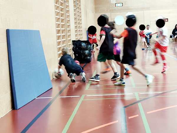 And Emmy wanted to be the goalie. He's saying that he can hold any ball, and he's actually really good at it. He throws himself at the ball, much more than any other kids, and so he's on the ground a lot, but it works. Today Emmy's team won, even though they were only 3 kids, while their opponents had 4 kids in the team.