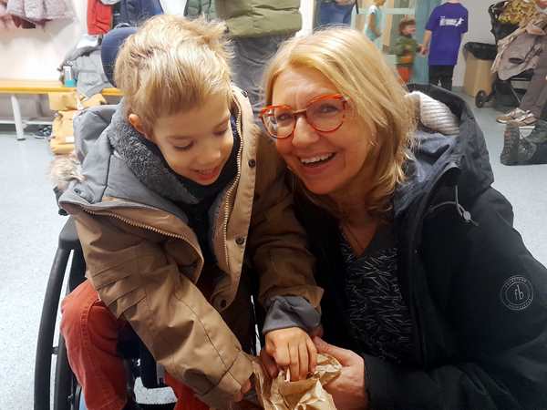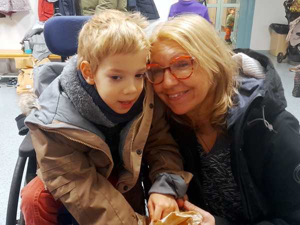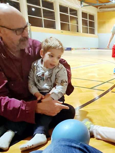 Day 1928. On Tuesday Sammy had his weekly ergotherapy session and Randy took a picture of him with his therapist. While they were there, Tammy and Emmy were home with me. I had students from 2 to 4 pm. Christine came before 2 pm and then left with Emmy at 2:45 pm to take him to Breakdance class. At 4:15 pm Randy left with Tammy and Sammy to take them to ball-playing class, where Christine and Emmy met up with them. Sammy was sad that his friend (a parent) hadn't come for the second week in a row, but at least Christine stayed there, making it a little bit easier for him.