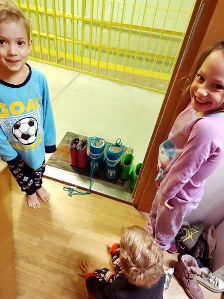 After our daily evening routine, we had something special yet to do. The kids got their biggest boots out and were excited to put them outside our apartment door so Saint Nicholas could fill them with nuts, mandarines and candy during the night. Even Sammy came out of bed for that. Who knows how early they'll want to open the door in the morning to check on their boots!