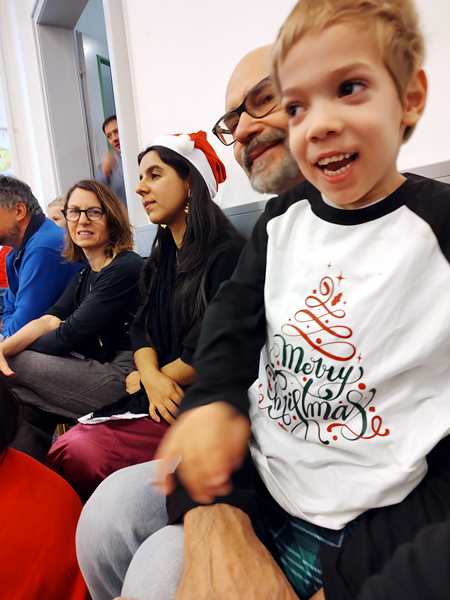 Day 1938. After a long day yesterday we had another long day today. We had to leave the house half an hour earlier than yesterday, at 9:30 am, as the Christmas party was starting at 10 am. We took the subway downtown, then walked to the music school and got there right on time.