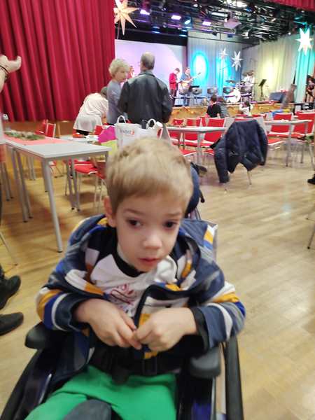 We ended up at church at 3:45 pm already, and it turned out that we could have arrived much later. But it allowed us to pick the seats right by the door where there was plenty of room for the wheelchair. They had set up tables all over the room and were busy decorating them. We sat down and waited, trying to figure out when the kids had to be where. In the end they did the practice for the dance on the stage in the sanctuary, and Tammy and Emmy danced with the others. It was only their second time ever doing the dance. They simply copied what the teacher in front of the stage was dancing.