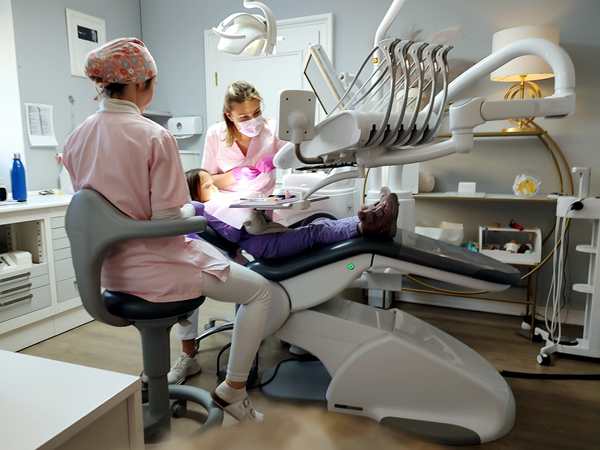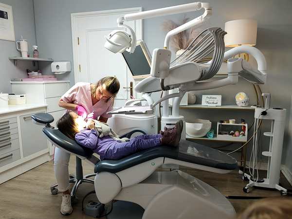 Then it was my turn. She looked at everything and showed me what needed to be done on the x-ray on the screen. She said I needed to come back three times. I was also supposed to have an informational meeting with another doctor about the implant, but that didn't happen. However, there was still time, and so the doctor said she could take care of a few fillings. I asked who was courageous to go first and was surprised, when Tammy's hand shot up. And so she sat back down on the seat. The doctor showed her her tools and told her step by step what she was doing. Soon the first filling was done. She then asked her whether she was up for getting another one done, and Tammy nodded. She did that one. Her assitant then said there was still some time, and everyone agreed to get the third and last filling taken care of as well. And so Tammy was all done.