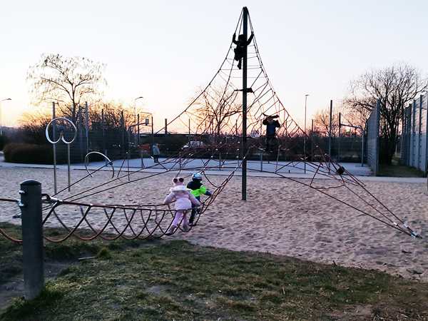 We sat down along the wall, and Tammy and Emmy ran off to play. Sammy started playing ball with Michi, Daddy and me. He was having fun. Tammy and Emmy were having fun as well, and I got to talk with Michi for much of the time. Before we knew it, it was 5:30 pm and over. We got dressed again and left to go home. On the way to the bus stop, the kids started playing at the playground there. We still had some time until the bus was scheduled to come, so it was okay. The sun was only just going down, which was unusual as it was already dark, when the class started, just recently, only last week.