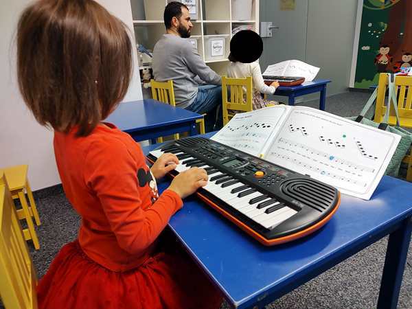 We took the subway downtown, then walked to the kids' music school. At 10:30 am their piano class started. For the first time in weeks Sammy stayed with us again and stayed for more than half the class.