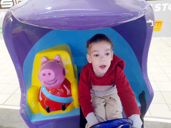 At 2:30 pm I started teaching. Randy and the kids arrived just after, which was later than usual. After I was done, I made their sandwiches and got everything ready for us to leave the house. Sammy said that he wanted to go to the shopping center where the Peppa Pig rides are, and Randy took him there. He had lots of fun.