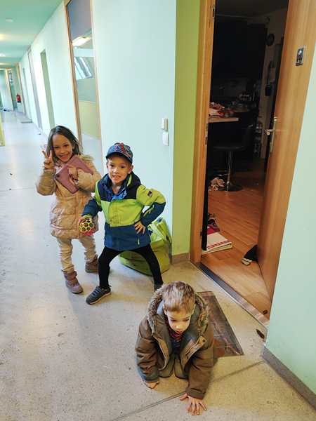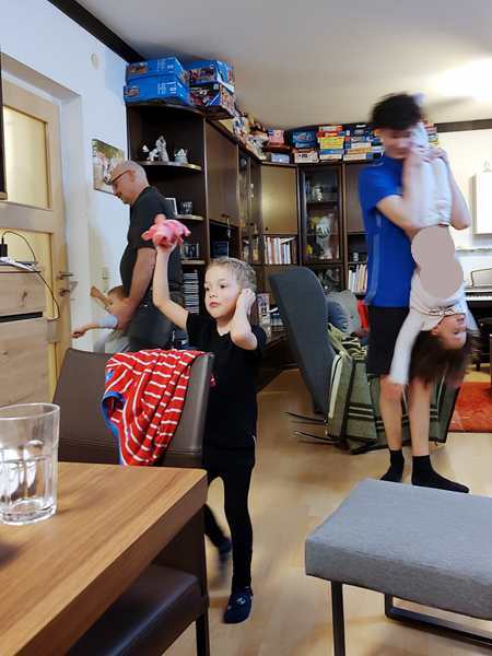 The entrance to the interstate is pretty close to our house. We hit some traffic crossing the Danube, but then it got better quickly. We made a big circle around the south of Vienna and stopped at he first reststop as Sammy's seatbelt was not on properly. Then we continued on. In total we had 200 kilometers to cover which was projected to take 2 hours. The kids were on their tablets, and Sammy was switching between tablet and headset all the time. Then Emmy pulled the door handle, and we could hear the door open slightly. I might have scolded him too hard for that. We stopped at the next reststop, and I turned on the childlock on both back doors.