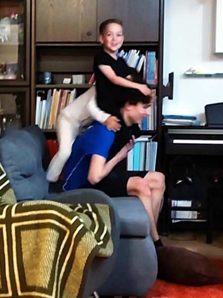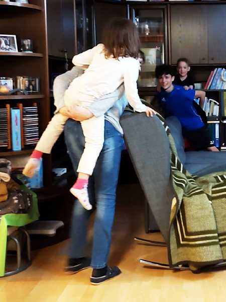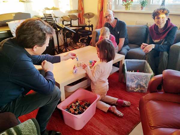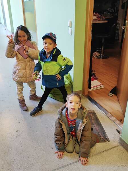 We put our coats on, walked inside the building and took the elevator up to the top floor, where our friends greeted us. They had toys ready for the kids who started playing right away. Tammy also showed how well she plays the piano, playing a few songs. Emmy didn't want to. Soon the calm playing started getting wild, and it stayed wild until the end.