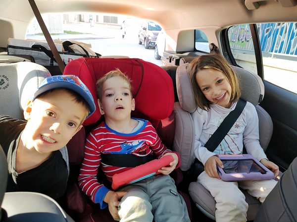 I made good progress and was pretty much done by the time Randy and the kids got home at 2:15 pm. Randy still had to put his stuff in, and we needed toys for tomorrow, and the kids gave me their favorite socks. We finished it all up, including packing food for breakfast and snacks, and Randy took everything to the car to fit it in somehow. The kids and I put our shoes and coats on, and when Daddy was still not back, we locked up the apartment to go to the car so we could get going. Tammy and Emmy were carrying the wheelchair bag together, while I was carrying Sammy and my purse.