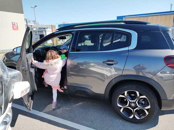 We had passed a McDonald's on the way here yesterday, and it was easiest to just go there. We got into the car and drove the 5 minutes there. The kids were happy about the dinosaurs in the Happy Meals, and we all had a good time eating. Then we drove back to the house.