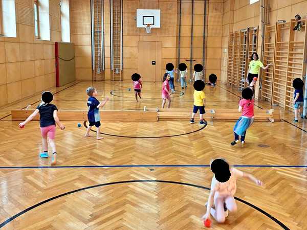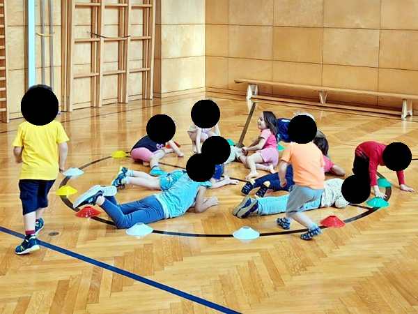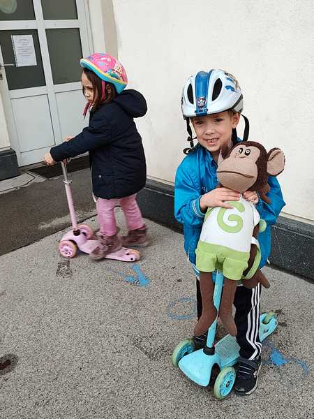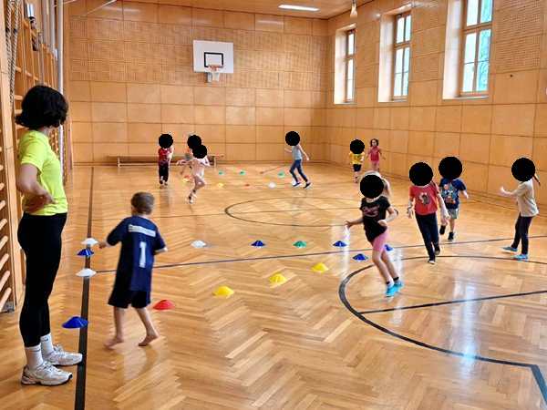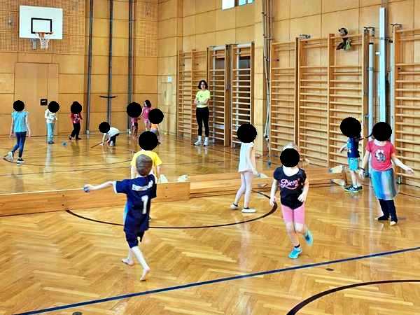 I finished teaching early as we simply didn't have anything to do. That gave me some extra time to get myself and the kids ready. Just after 3 pm the three of us left the house. The three of us walked to the train station and got on the 3:20 pm train, then we rode our scooters to where their weekly exercise class was taking place. It was raining and there were puddles everywhere. Both kids had gotten their pants quite wet, and Emmy's socks were completely wet as well. After they took their long pants off, they also took their socks off and ended up doing their class barefooted for once. They had just as much fun.