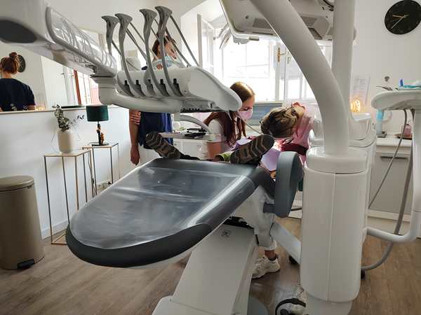 We went to the reception desk, where we were given our next appointments and where we had to pay. Then we could finally leave.