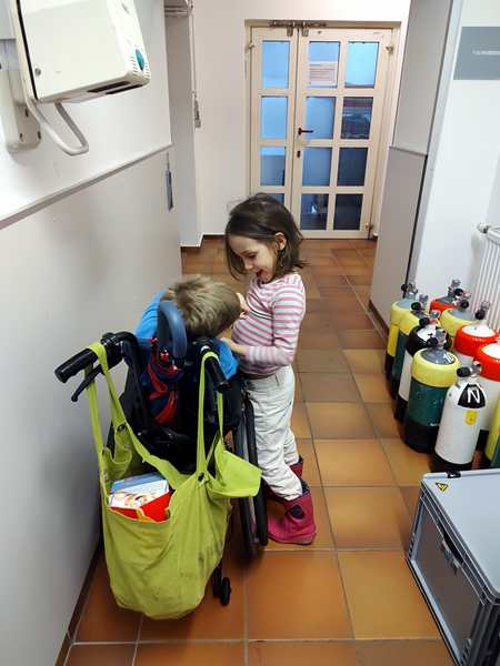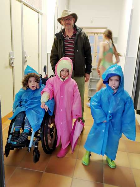At 1:45 pm their class started, so Randy took my place with Sammy, while I went to the cold water pool with the other two for their class. It sure was cold! We went into the water, and the teacher did the greeting song - with Tammy, as usual. Then she handed out swim noodles, even to those who said they didn't need them any more, like Tammy. They then had to swim to the other end and drop off a piece and swim back. She was gonna look at their technique. Then she handed out a few rubber animals that could be filled with water and then squeezed. The kids had to take them, when they were hit with the water, so it did its rounds. Then Tammy was allowed to get rid of the noodle and swim without it, but Emmy wasn't. He was also starting to whine about the cold water again and didn't want to continue.