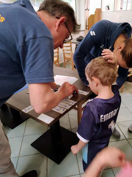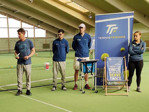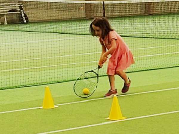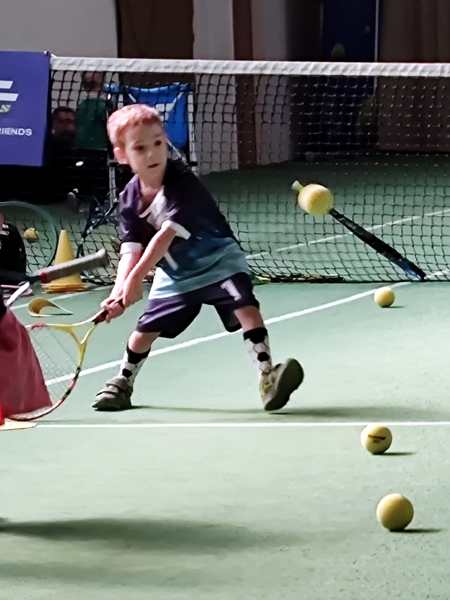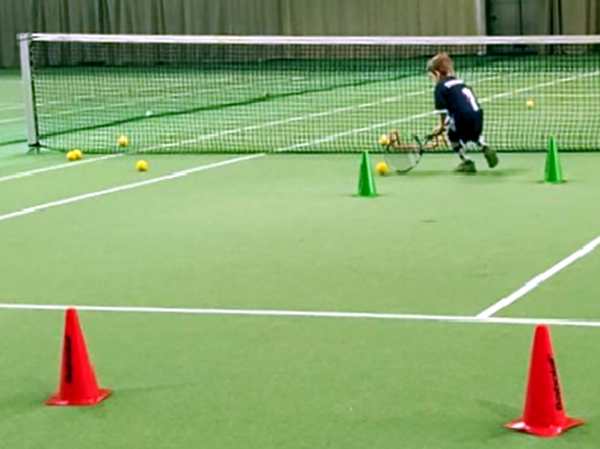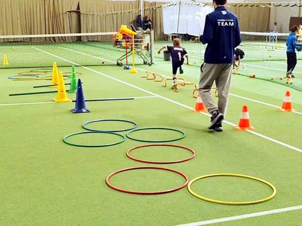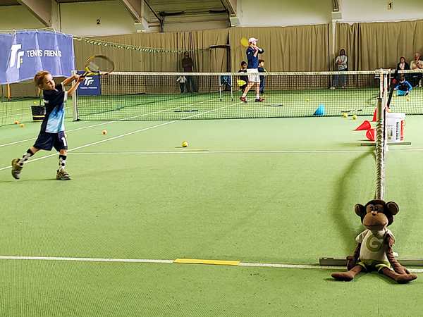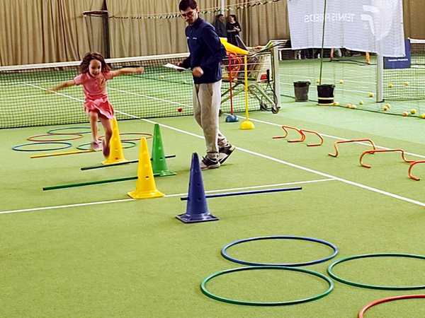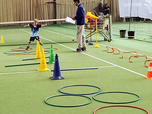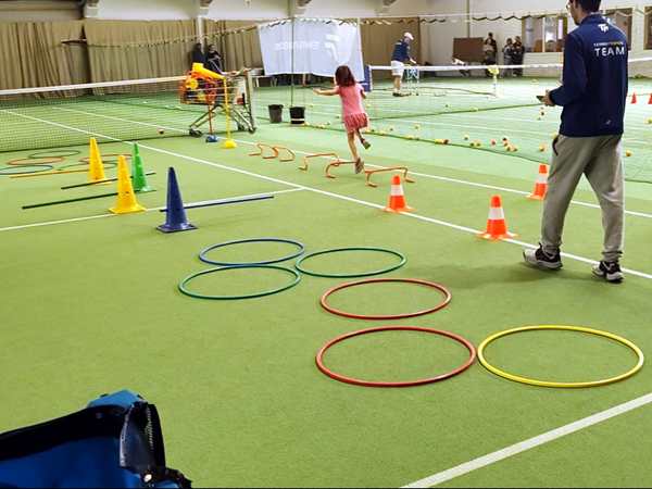 We then went on to the second court, where it was not about tennis. They had three tasks there. First, an obstacle course that they timed, then moving a ball through cones, which was also timed, then throwing a ball into buckets. Then we moved on to the third court.