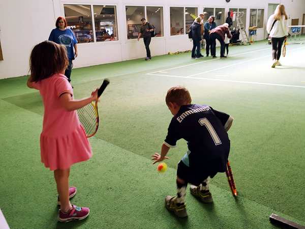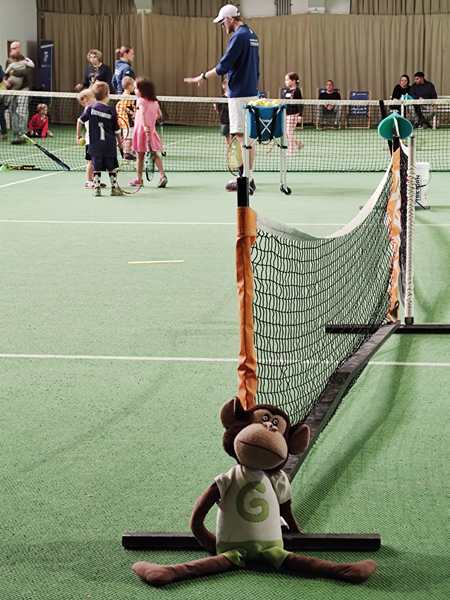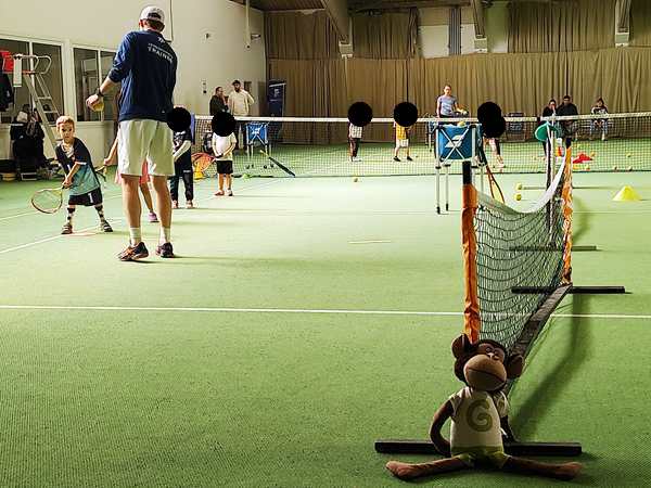 While they had six courts last time - and lots of kids - they only used three courts today, and there were not that many children. It was all younger children that can't play tournaments yet. There were two other kids in their group, and I know that one was 4. The other one was probably 6 or so.