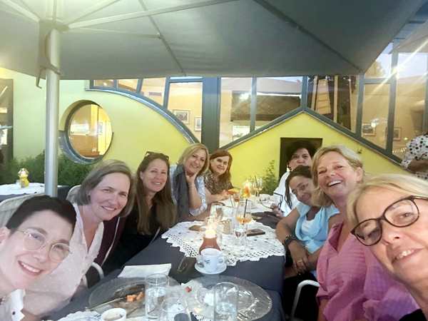 I had my scooter with me as I had to cover some distance to the tram stop, as well as after getting off the tram. Unfortunately I had just missed a tram so I had to wait for a long time for the next one. I rode it to the end, then rode my scooter to the restaurant where I arrived at 7:20 pm. Everyone else was already there. Every year around this time, the ten of us who graduated together in 1991 get together for an evening at a restaurant. I was the last one to arrive, so everyone else was already eating. I ordered and joined the conversation. As always, we had a great time reminiscing about the past, as well as talking about the present. Only one of the (only) girls had not made it. We took some pictures, and at 10 pm it was time to get going. A friend from the other end of the table and I were the first ones leaving. As we had been too far apart to talk, we did so walking back to the subway/tram stop. Then we went our separate ways.
