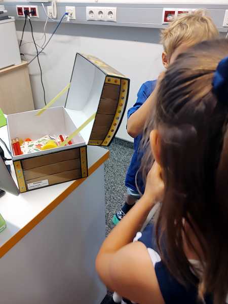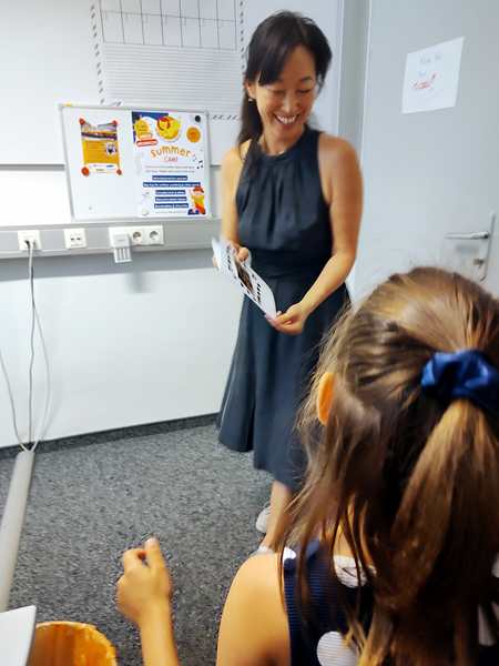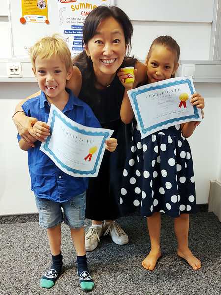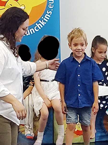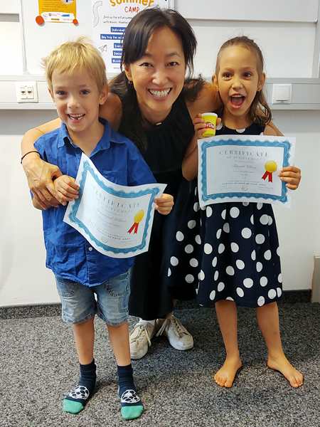 The kids were all playing together in the hallway. I then reminded them that they had to pick up their gifts and badges. I was then also given their certificates; the report cards will be emailed to me at a later stage. We then took a picture with them and their teacher, and they were allowed to pick a gift out of a treasure box. First, they both chose play-doh, but then Emmy changed his mind and took a littly bouncy ball instead. As for the badges that were the prize of having practiced every day, they couldn't find them, so they'll have to wait until September to get them.