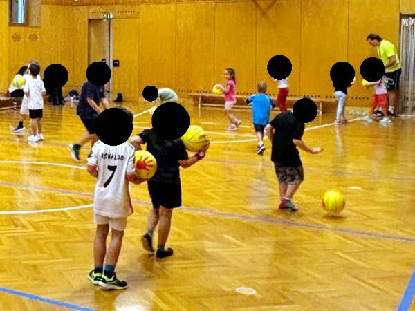 After the train, we rode the tram for 5 stops and walked to the school where their exercise class was taking place. It was the second session of the semester, and part 2 of 5 of learning to play basketball. I stayed in the locker room while they were playing. They had lots of fun.