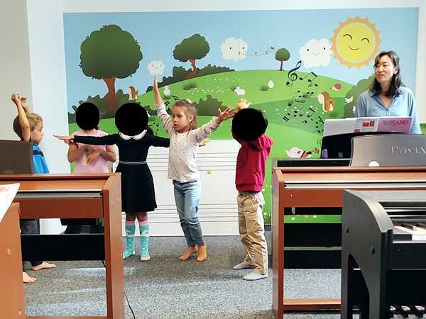 On Saturday I would have liked to sleep until my alarm went off at 9:30 am but no chance. The kids were loud and kept waking me up. Just before 10 am I left with Tammy and Emmy to take them to their piano class. They had practiced every day of the week, so they were ready. This time there was a new student in class, and she was not on the level of the others, so the teacher had to spend more time with her which slowed down the whole class. The kids never got to play the song they've been practicing and had hoped to play - and that's the case the second week in a row. After the short and easy ones, she did the song with actions with them, and then did story time for the first time. However, it was already late, so the class ended later than it should have.