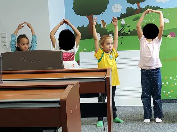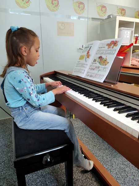 Today I got up when my alarm went off at 9:30 am. Of course the kids were up early, though not as early as during the week, when the alarm gets them up. Just before 10 am I left the house with Tammy and Emmy. We rode the subway downtown, with Emmy doing his reading exercise and just finishing it in time before we had to get off. We walked to their music school where their piano class started at 10:30 am. One student was missing, so it was Tammy, Emmy, one kid and the new kid. She did all the songs again that they had practiced this past week, then did the song with actions with them. I then mentioned to her that they had been practicing this one song since end of June and would like to show what they can do. They now play the song really well at home. Tammy went up to the teacher's piano first, and I went there too to help her at the two spots in the beginning where she tends to play the wrong note. Unfortunately she was so very nervous that she got it all wrong - at least the first part. The other two parts were better but also had lots of mistakes. She was a little deflated but I encouraged her.