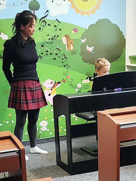 At 1 pm we left and took the subway back downtown and walked to their music school where we arrived ten minutes before the 1:30 pm class. There were few people there. We thought their teacher was doing the class, but it was actually one of the employed teachers who we know from the special events and from seeing her around. She is really good with little children.