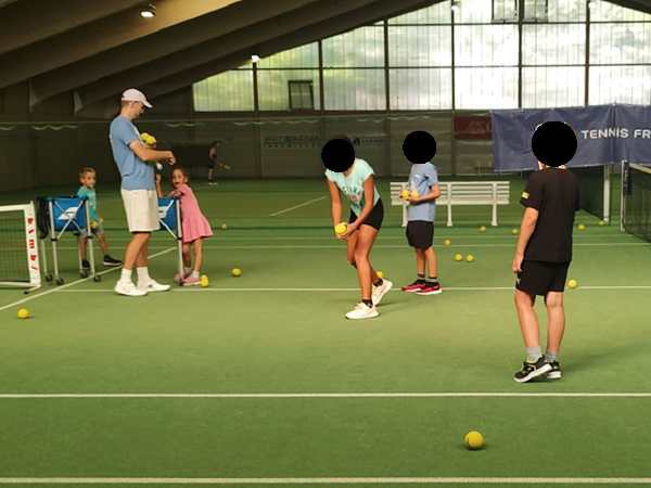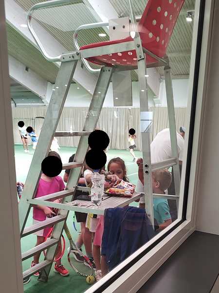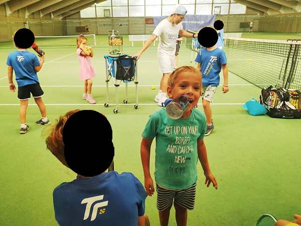 On Thursday I went straight back home after dropping off Sammy at school as I had a 9 am student. After I was done teaching at 10 am, I continued working on the computer. At 1:30 pm I picked up Sammy from school. Randy picked the other two up at 1:50 pm and took them to their tennis make-up class. They were making up for the last tennis class before the summer when we were already in the USA. The class went from 3 to 4 pm. Sammy and I were home but left the house just before 3 pm to go to the tennis center. We got there about 15 minutes before the class ended so I got to watch them for a few minutes.