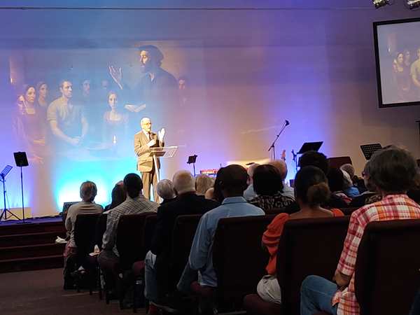 We sat close to the back in case we were called to go to Sammy but that wasn't the case. It was an interesting service, learning about how it all started 500 years ago, and worshipping God in unity. It was supposed to end at 6:30 pm but that was not the case. As we'd been told to pick up the kids at 6:30 pm, we left and went downstairs. Sammy was very happy to see us. We then stayed downstairs where they had set up little snacks for everyone, and soon people started coming.