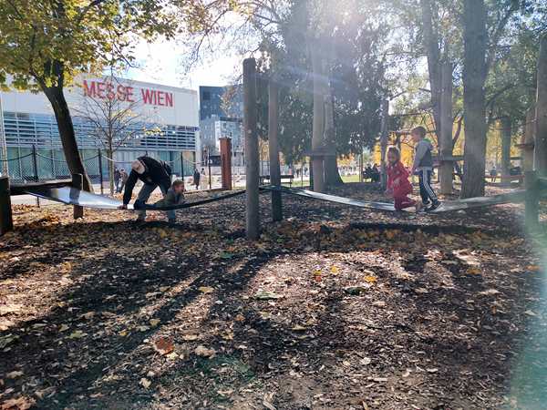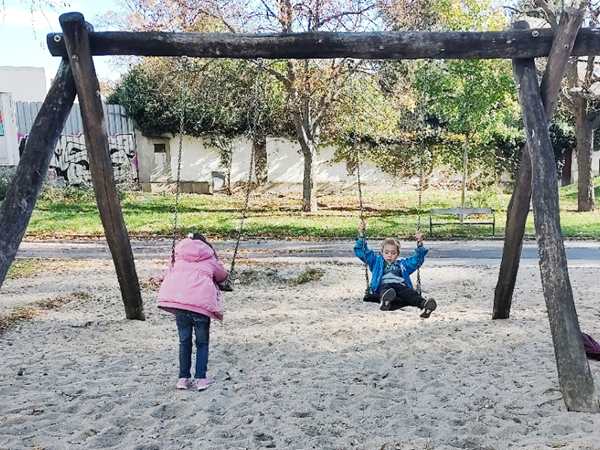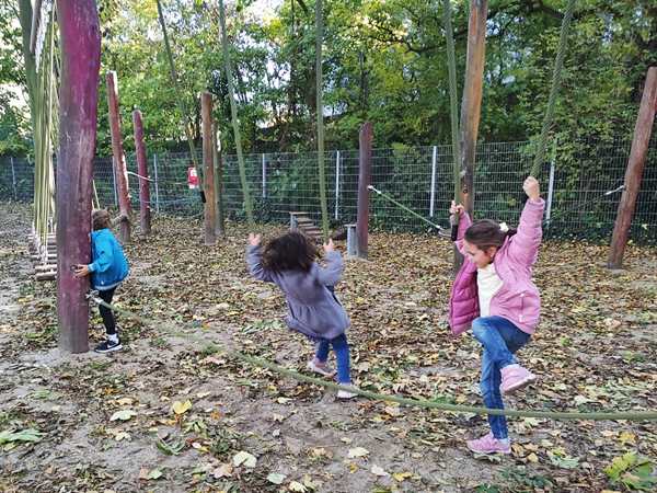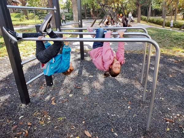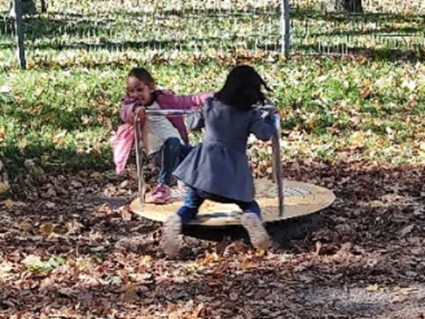 On Friday I taught from 9:30 to 10:30 and 11 to 12, then I had to leave the house right away. We were switching things around for the first time. I took the 12:12 bus, then another one and arrived at the kids' school a few minutes before they were to come out at 12:50 pm. Randy picked up Sammy at 12:30 pm and took him home. Once Tammy and Emmy came out of school, we walked to the bus and then took it to another bus. Once we got off the second bus, we went to the playground right there as there was still time until their tennis class at 2 pm. They had fun, and Tammy started playing with another girl there. After a while we left to walk the rest of the way to the tennis center. Once there, Tammy put her tennis dress on, then they went on the court to play.