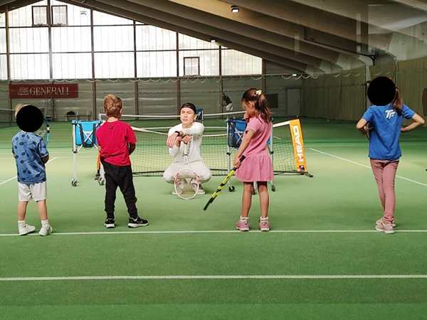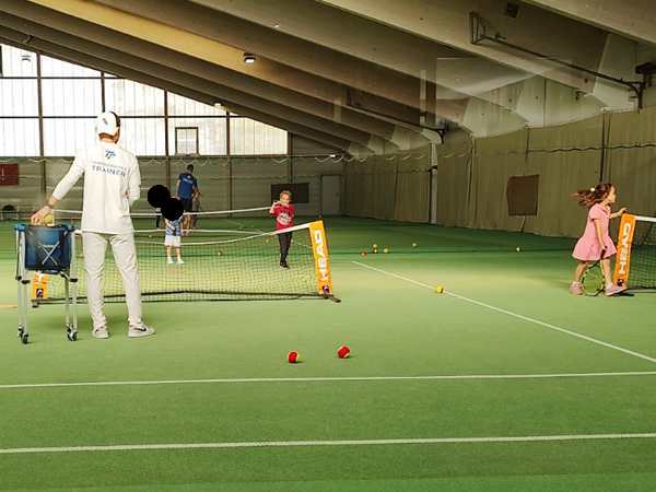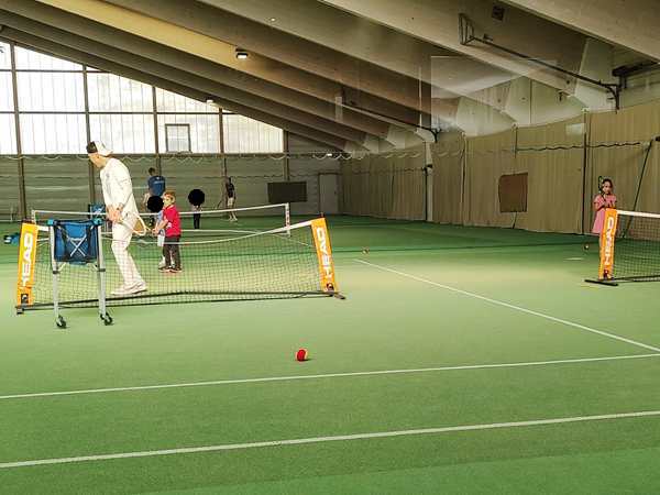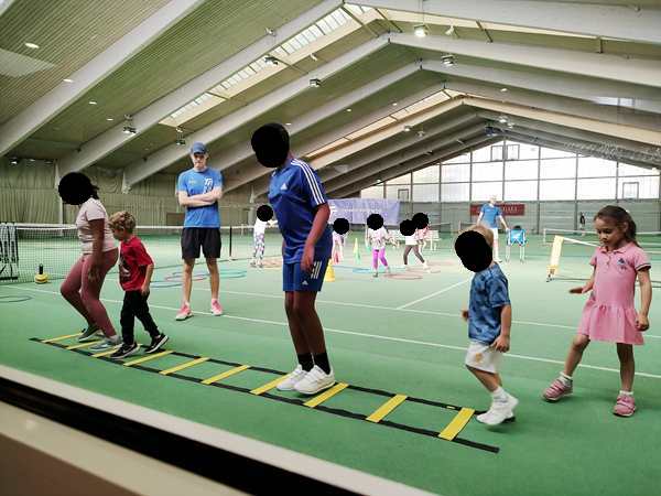 It was my first time there in quite some time, and the first time since the winter semester started earlier this month. I was hungry and got myself a snack and a drink in the restaurant there and sat down by the window to watch the kids play. Emmy plays better than Tammy. There were two other kids in their group, but in total, there were a lot of kids there, more than I had ever seen before, even quite a bit older ones. They did the warm-up together, then they each went to their trainer. Our kids still have the same trainer they started learning tennis with.