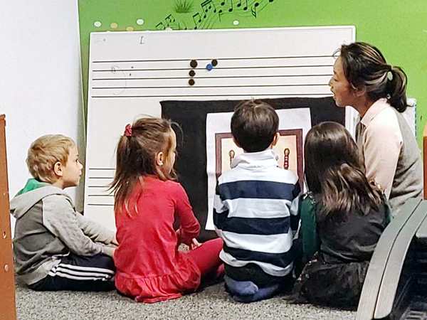 After the finger warmup, the teacher started going through all the songs of the book from this semester, then she turned to a new page and reviewed the chords they already know and asked them to try to play those two new songs with them. The second one is quite a challening song, but we have two weeks to practice until the next class. She had them write under each chord what chord it was. Then they all went to the front to do their song, followed by a story. After they got their stickers and stamps, the class was over. We took our scooters and rode them back to the subway, then we took the subway for three stops to go meet up with Randy and Sammy at the McDonald's there. They were already waiting for us. We had a good time eating, then the kids wanted to go to the playground right there. I was very tired but agreed to go there for a little bit.