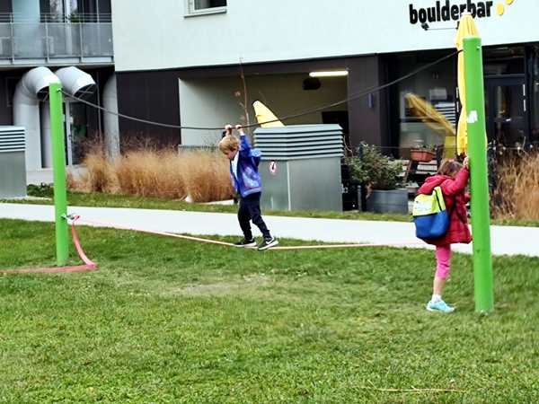 I took the subway to the end then walked to the premises of the maths club. I had to wait until the class was over before they opened the door, so there was no watching the class for the last few minutes. The kids still wanted to go to the playground right there, so they played with their friend, then moved on to the climbing wall, then did some balancing. Then it was time to get going and go home.