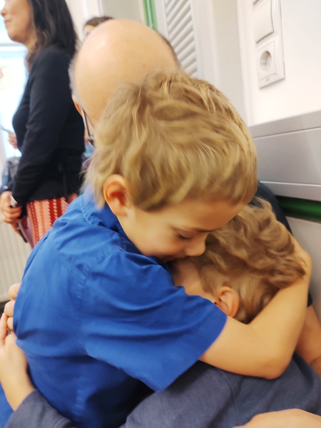 There was no more program for the rest of the day. I was so very tired and wanted to get some rest but didn't get a chance. Eventually we went downstairs for piano practice, then I returned upstairs while everyone else stayed downstairs. I then lay down for a much needed nap and slept for about an hour, until I was woken up by the kids. They were hungry, so it was time for me to go to the kitchen to make their dinner. They ate their sandwiches, more than usual, then I cut up their fruit. Sammy was gonna eat his fruit in the bathtub. Tammy was on her tablet, Emmy was watching soccer on the projector, and Sammy was doing different things - tablet, toys. 7 pm and bathtub time was approaching so I was saying we should get started in the bathroom. Suddenly there was a sound, then the sound of Sammy crying and the kids shouting. Randy walked over to Sammy and shouted out that there was blood everywhere. He has a tendency to exaggerate. Sammy had a wound on his eyebrow that was bleeding, and he was crying. It seems that he had pulled himself into a standing position and had then fallen down. We're not sure what he had hit with his eyebrow. I carefully wiped the blood away. It looked like quite the cut. He was still crying. We decided that he needed to go to the hospital to be sewn up, and Randy was going to take him. Sammy was scared but I calmed him down. When Emmy was two or so, he had fallen and had had an identical wound on the same eyebrow. When you look closely, you can still see the scar. Now Sammy was going to be a twin again, with the exact same scar. However, I was hoping he wouldn't have to stay in the hospital for 12 hours like Emmy had been back then. Emmy was put to sleep to be sewn up, and as he had just eaten, they had to wait that long until there was no more food in his system. At 7 pm, Randy left with Sammy to ride the two subway stops to the hospital and then go to the kids' emergency room. Tammy and Emmy were a bit shocked, especially Tammy who was crying until she went to Jesus who gave her peace. She knew that Jesus was with Sammy. Tammy and Emmy then went into the bathtub but missed their brother there. Then we did story time. Sunday is the only day of the week that I don't teach from 8 to 9 pm. We read the children's book we had received at McDonald's, then the Bible, then I prayed for them and for Sammy, and they each prayed as well. They then brushed their teeth and went to bed. Tammy wanted to sleep in my bed and cuddle with me, but I told her that was not possible. It was time for me to get something to eat; Randy had just finished eating before they left. Thankfully, he kept calling us and updating us on the situation. By 9 pm they were back home - much to the siblings' delight who were still awake and waiting for their brother. Instead of sewing him up, they had put some glue and a special bandaid on it. And because they are concerned about a potential concussion, they said that Sammy should stay home from school for the next three days. But the hardest is that he is not allowed to use his tablet or watch anything. I'm not sure how that is going to work. In any case, it looks pretty obvious that he does not have a concussion. It was time for him to go to bed but it took him a while to fall asleep. They all went to bed much later tonight but Tammy and Emmy have school in the morning and have to get up VERY early.