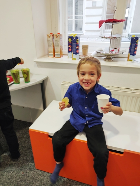 We were all enjoying snacks and drinks but didn't do much talking with anyone. As it was this early, I was glad that we could all go home instead of the kids having to go straight to their maths club. After about 15 minutes we left, walked to the subway and rode it home where we arrived before noon. I immediately went to the kitchen to make lunch. Randy had to leave with them at 12:25 to go to their maths club. I had made sandwiches for the kids to eat, so only Randy ate before leaving. Sammy ate a little later, after they had left.