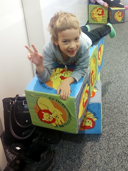 Today my first alarm went off at 9:30 am which was nice. I got up and got ready to leave the house which I did before 10 am, together with Tammy and Emmy. We did reading practice on the subway going downtown. Then we walked to their music school. It was the last class of the semester. Emmy always protects my bag when I go to the bathroom before class starts, and I never know what to expect when I get back. He always builds a protective wall around it with the foam cubes.