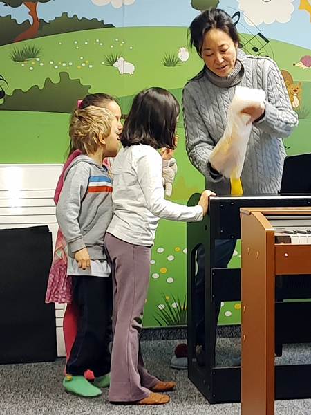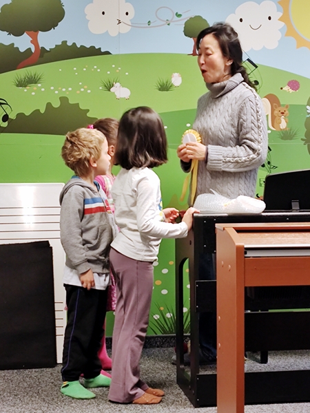 Their class always starts late but it started extra late today, at 10:50 instead of 10:30 am. There was only one other student there; the fourth one hadn't come in over a month. They did their finger warmup, then the song they had started before Christmas but not played all January because of the concert. Then she started a new song with them. Time was short so the class was over after that.