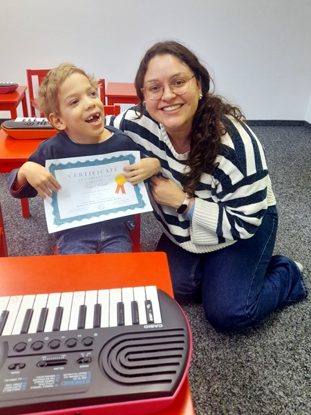 We put our coats and shoes on and walked back to the subway. Everything was icy as it had rained and then frozen so we had to be careful. We rode the subway home where we arrived at noon. I quickly put a pizza into the oven and warmed up our leftover pasta and ate it. I got everything else ready so Randy could eat and portion out the pizza for the kids. Then I had to start teaching at 12:30 pm which is why I had been under pressure to get it all done before. Randy left with Sammy at 1 pm to take him to his music class at the same school. He also got a certificate and had a picture taken with his teacher that he loves so much.