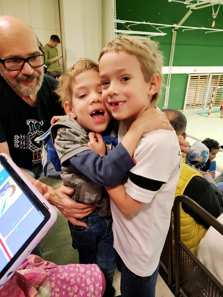 Just before 1:30 pm I was done teaching, and I quickly got everything ready for us to leave. Tammy, Emmy and I left at 1:30 pm and took the subway then the bus then walked to the school where Emmy's end-of-semester soccer match was taking place. He had to be there at 2:15 pm, and we got there just before that. Many other kids were arriving as well, and the kids that had played in the morning were just leaving. We made our way through hallway after hallway, following the signs until we finally got to the locker rooms. Emmy got changed, then we went to the gym where the trainers were. One trainer took Emmy to the trainer in whose team it was. There were 10 teams according to the locations where the kids had done their training this semester. In Emmy's teams, there were four locations combined together, I guess those with few kids that had registered for the match. All kids were first and second graders. We left Emmy there and went upstairs to the rafters to find ourselves some seats. We also reserved seats for Randy and Sammy. In the end, all the seats were full. I had brought Tammy's tablet with us as we were going to be there for 6 hours which was a long time. Tammy started watching fairy tales on her tablet. The matches were only starting at 3 pm so we still had time until then. We were sitting right by the guy with the computer and the microphone. He was commenting everything and putting the scores into the computer. We were able to keep up with the scores and statistics on a website. Emmy's team was in the last pairing to finally get to play so it took a while. Each match was 9 minutes long but then Emmy didn't even get to play the whole time as they had too many players so that some had to stay on the bench for half the game which was the case for Emmy for four out of the five games they played. When he was not playing, I was on my phone as I'm actually not interested in soccer at all. I talked to Randy a few times who wasn't too excited about coming especially because of all the stairs at the school which is difficult with the wheelchair but then he decided he'd come for Emmy's sake. Emmy was just playing his second match when they arrived after 4:30 pm. Sammy was excited to see us and be with us. He was also on his tablet but when Emmy was playing, he was cheering for him, just like Tammy. Emmy was coming up to see us between games a couple of times. We bought popcorn, and Emmy wanted gatorade. Emmy had a good team so that they won 3 out of the four games and were in first place in their group of five teams. Once al the teams had played four times and there was a ranking, the first team of each group, the second etc. then played another match (this time 8 minutes) to decide whether they were first/second, third/fourth etc. in the overall ranking. The last teams started so that Emmy played the very last match of the day. The other team was very strong and won 2:0. Therefore Emmy's team was second overall which was a great achievement. Emmy had the ball a few times but didn't get to score a goal.