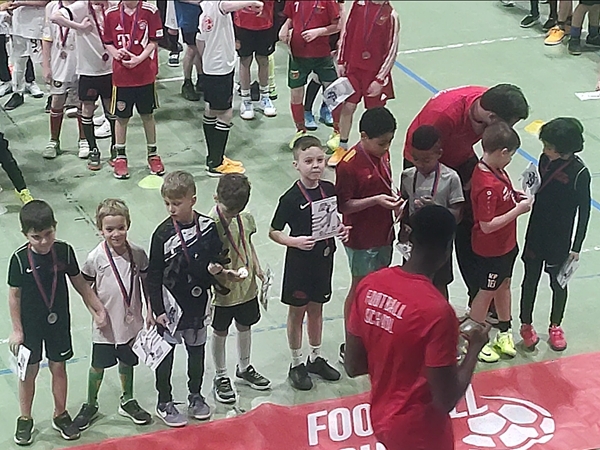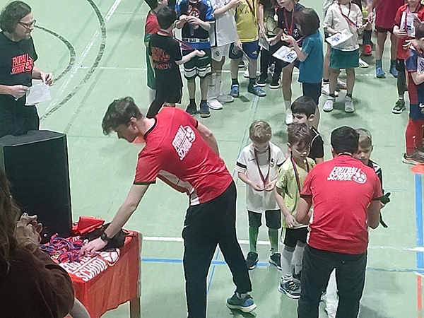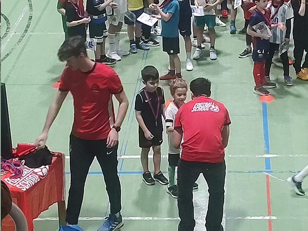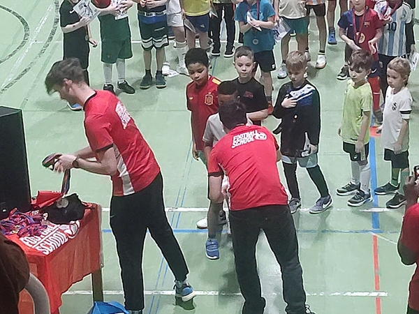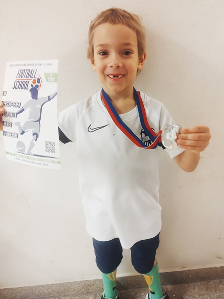 Tammy and Sammy were already pretty tired as it was nearly bedtime which is 8 pm. It was about 7:45 pm when the award ceremony started. Emmy got a silver medal and what I thought was a certificate but it turned out that it was advertisement for their camps. Emmy does their camps during every school holiday anyway. They took a group picture then returned to their spot among the other teams. After all ten teams had received their medals, a player in each team still won a fair play prize but it was not Emmy. Randy and Sammy were already making their way to the exit as they had to conquer a few staircases. Tammy and I were making our way downstairs to the gym and the locker rooms. We were looking for Emmy but couldn't find him. He finally arrived. He had gone upstairs to find us but we had already left there. I took a picture of him with his medal. I was so proud of him! Then it was time to get changed. Emmy was among the last ones to be done which is not untypical. We then started our long trek through the maze to find the exit where Randy and Sammy were waiting for us. Then we had a bit of walk to the bus stop plus there was some construction but we found it and had to wait a bit. Then we took the bus and the subway and got home at 8:45 pm which was quite late for the kids. We got them ready for bed immediately; I had taken sandwiches with me for them to the match that they had long eaten. Randy and I then got ourselves something to eat. Then I went back to work, working on the pictures. I had moved my 8 pm student to Sunday because I had known we'd come home late.
