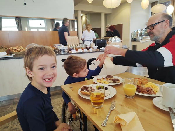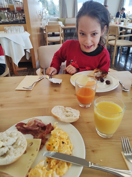 It was time for me to make sandwiches for everyone. I handed them all their plates, and we all ate and still had plenty of snacks and dessert for after. It was the time for everyone to relax on their devices. Just before 8 pm, I read them a story and prayed for them, then they went to bed. Of course all three in our big bed of three single beds. I then started working on my computer. Now it's after midnight and therefore later than the last few nights. In the morning we have to pack and catch a train back to Vienna after breakfast.