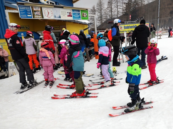 We were done and started walking in the direction of the ski rental place where a lot of people were heading. There the kids had to take their ski boots off and put their shoes on, hand in their skis and their helmets. Then we were done. Before we left the shop, I ordered a shuttle to pick us up and take us back to the hotel. Then we walked to the bus stop. We still had ten minutes to wait there before the shuttle arrived but it was okay. There was a roof, and it wasn't too cold. We were talking. They were telling me how much they had enjoying going up the mountain and skiing down. This year they enjoyed skiing more than ever before.