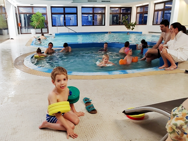 Back at the hotel and in our room, they showed their medals to Daddy right away. Then they spent a few minutes relaxing before we put our swim suits on to go to the pool one last time. It's been the hightlight of the day for Sammy every day as he's been spending the whole day in the hotel room. And once again we were having lots of fun role-playing our stories. And he wanted to do lots of somersaults in the water that I helped him with, and Tammy joined him. As for Emmy, he dared to try a somersault jumping into the water from the edge and did quite a few of them. He even asked me to record it and show it to everyone on the internet. After we'd had fun for a while, we decided it was time to leave which we did after a nice, long hot shower right there by the pool.