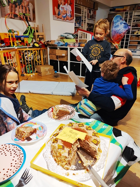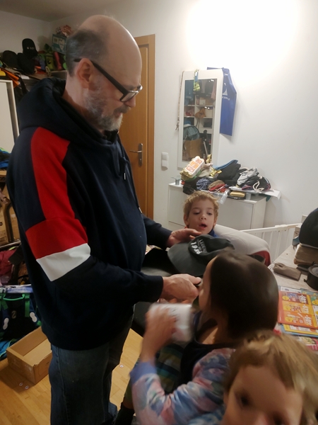 Just after they had left, the doorbell rang. Randy's birthday presents had arrived. A few minutes later Grandma also had to say her good-byes, so we all went upstairs. It was time for me to get back to work. I still had some time until teaching at 5 pm. However, Emmy had one of his fits, and this one lasted until 6 pm. He was upset that he had to do two maths papers for school before getting to use his tablet. I also wanted him to do his reading practice. I started teaching at 5 pm, and the whole time I was teaching he was screaming and/or crying. Thankfully Sammy was fine, eating his dinner I had made and given them and watching his tablet.