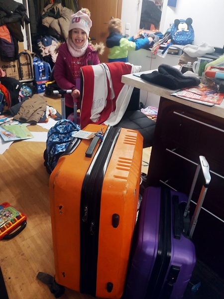 Day 2351. I went to bed as late as usual last night and set my alarm for 9:45 am. However, the kids were up early and kept coming to me so I ended up getting up earlier than planned. It was time to finish packing everything and make sandwiches to eat on the train. We could have taken the 11:50 pm train but decided to take the earlier train just to be on the safe side. And then we were all ready even earlier and Sammy was whining because he was impatient and wanted to leave. And so we decided to take an even earlier train. At 11 am we left the house with our two suitcases, my carry-on and purse and the two kids' carry-ons.