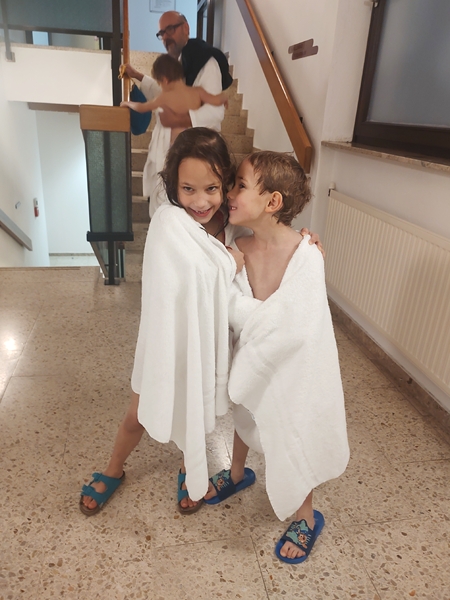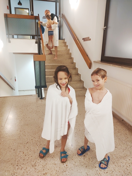 Back in our room everyone already put their pj's on even though it was only about 5:30 pm. Then they got on their tablets, and I made them sandwiches for dinner. We had brought bread, ham, cheese and lots of snacks with us. Everyone (maybe except Randy) got plenty to eat and enjoyed it. When 8 pm was approaching, we read a story, and I prayed for them. Then it was bedtime. But it was no easy bedtime. Emmy wanted to also sleep between us, next to his brother, which meant that Tammy didn't want to be the only one in the other room even though the door to our room was open. It was a back and forth. In the end, all three kids ended up sleeping in between the two of us. After all, we had three single beds next to each other, creating one big one. Tammy was asleep right away but Emmy needed much longer. Sammy was still up at 9:30 pm before he finally fell asleep. And they have been bothering each other a bit since especially Tammy moves around a lot in her sleep. Randy went to bed just before 11 pm, and now it's just after 11 pm, and I'm planning to go to bed much earlier than my 2 am bedtime in Vienna. After all, there are no dishes to do, and I'm pretty tired from several days of short nights and no chance to sleep in the morning. And tomorrow, I have to get up early.