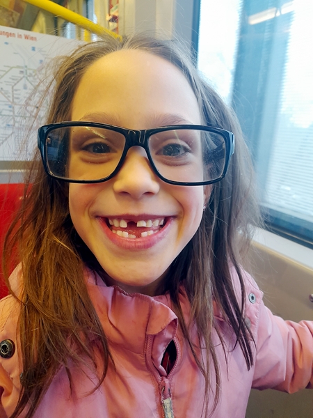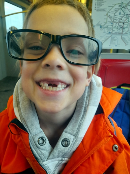 Just after 3 pm they returned home. We then went downstairs for piano practice. Tammy was starting to act up again at that point. Back upstairs, there was not much time left. At 4 pm we all left the house again to go downtown. We took the subway and then the tram. Sammy was so very excited as he'd been asking for many weeks to go there. It was the kids' first time seeing Kasperl and Pezi there in a regular performance. We were once there for a party and saw a show.