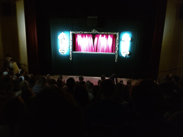 After we got off the tram, we walked to the entrance of the building. We left the wheelchair and our coats with it, then took the stairs down to the theater. We showed our tickets and went to our seats. Sammy was very excited. He wanted to sit with me and ended up sitting next to me or on my knees for the whole time. Tammy had behaved really badly on the way there and sat with Daddy, while Emmy stayed with Sammy and me. And then the performance finally started. Kasperl and Pezi were there right away, and they did their greetings that Sammy already knows by heart as he watches a lot of their shows on YouTube. Sammy was elated! Then their adventure started, and it was much fun. Halfway through the show, there was a break. The kids were saying that they were hungry but we had planned to go to McDonald's after. They still had a little snack each. It wasn't long before the performance continued. An hour after it had started it was over.