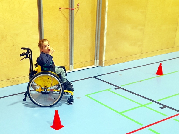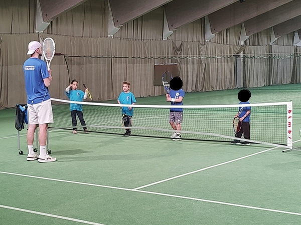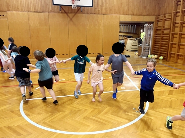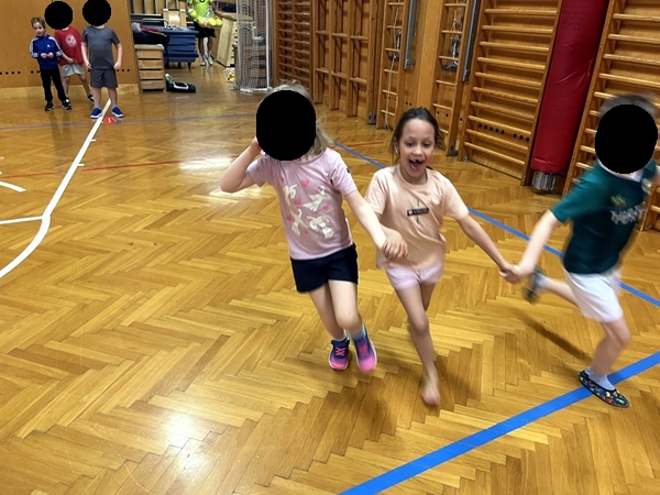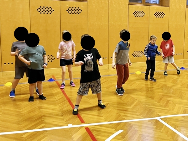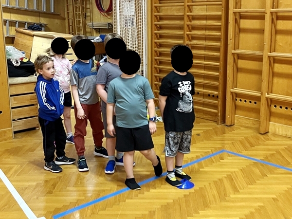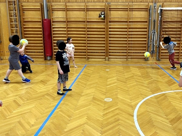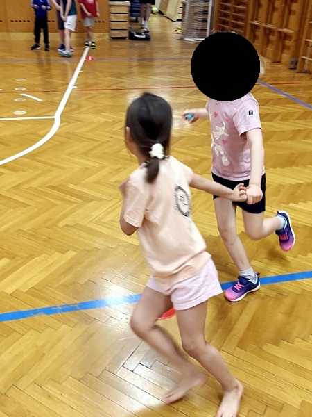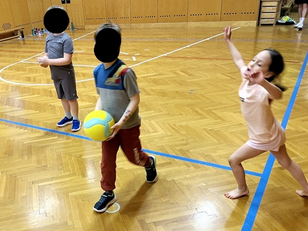 The three of us took the 4:20 pm train, then the tram. Both of them finished their reading practice on the way there. After we got off, we walked to the school where we arrived on time. They got changed, then walked into the gym for their weekly exercise class. Today, it was session 4 of 5 of volleyball, and they really enjoyed it.