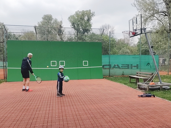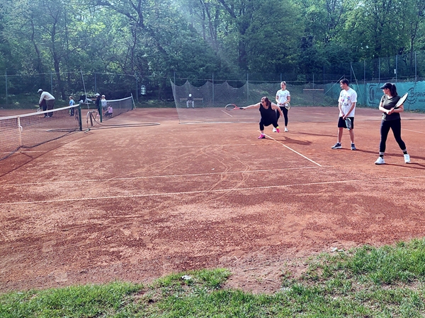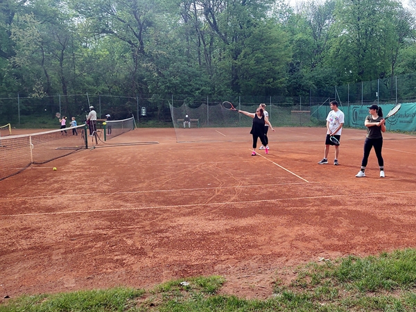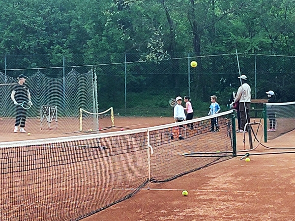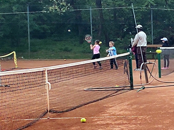 The trainer started by showing us how to do forehand, then we played balls back to him. After they were all gone, we picked them all up again and put them into the basket. Then we did backhand. He let me do it the way I've learned rather than the way it is taught today. Next we did two balls each, one forehand, one backhand, then volley. After that, it was time for the serve; something I had never liked. Then the hour was already over. It had hardly been physically demanding, thank God, and it had been lots of fun. I'm glad I'm taking this class.