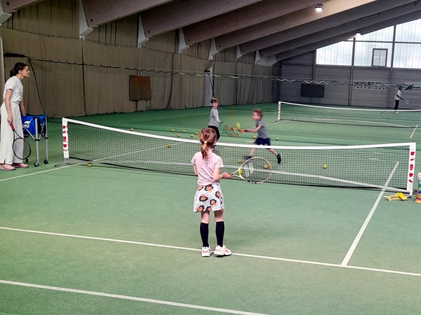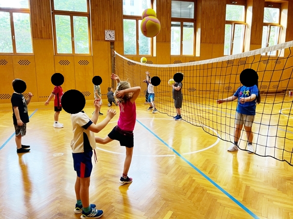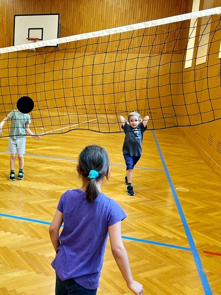 We still arrived there plenty early. The kids changed and went inside for the last of five sessions of volleyball. They had lots of fun. I stayed in the locker room and had to close my eyes soon as I was so very tired.