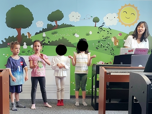 At 10:30 their class started with the greeting song. Then she found out about the inclusion run we were going to after and made the guessing game about what the other two students were doing in the afternoon. Then they did the finger warm-up, followed by doing some of the old songs plus a new one. They got to play one of the old ones all by themselves but I had to stand next to them and help a little. As for the new song, they also had to mark all te's, skips and name the chords. I went back and forth between them to help. In the end, they went up front and sang the new song with the actions. After that, it was still story time even though we were already over time (but then we never start on time). The teacher did the story and had the kids participate. Then the kids got their stickers and stamps, and the class was over. We left and walked the opposite direction to walk to the McDonald's one subway stop away. Randy and Sammy got there before we had left the music school.